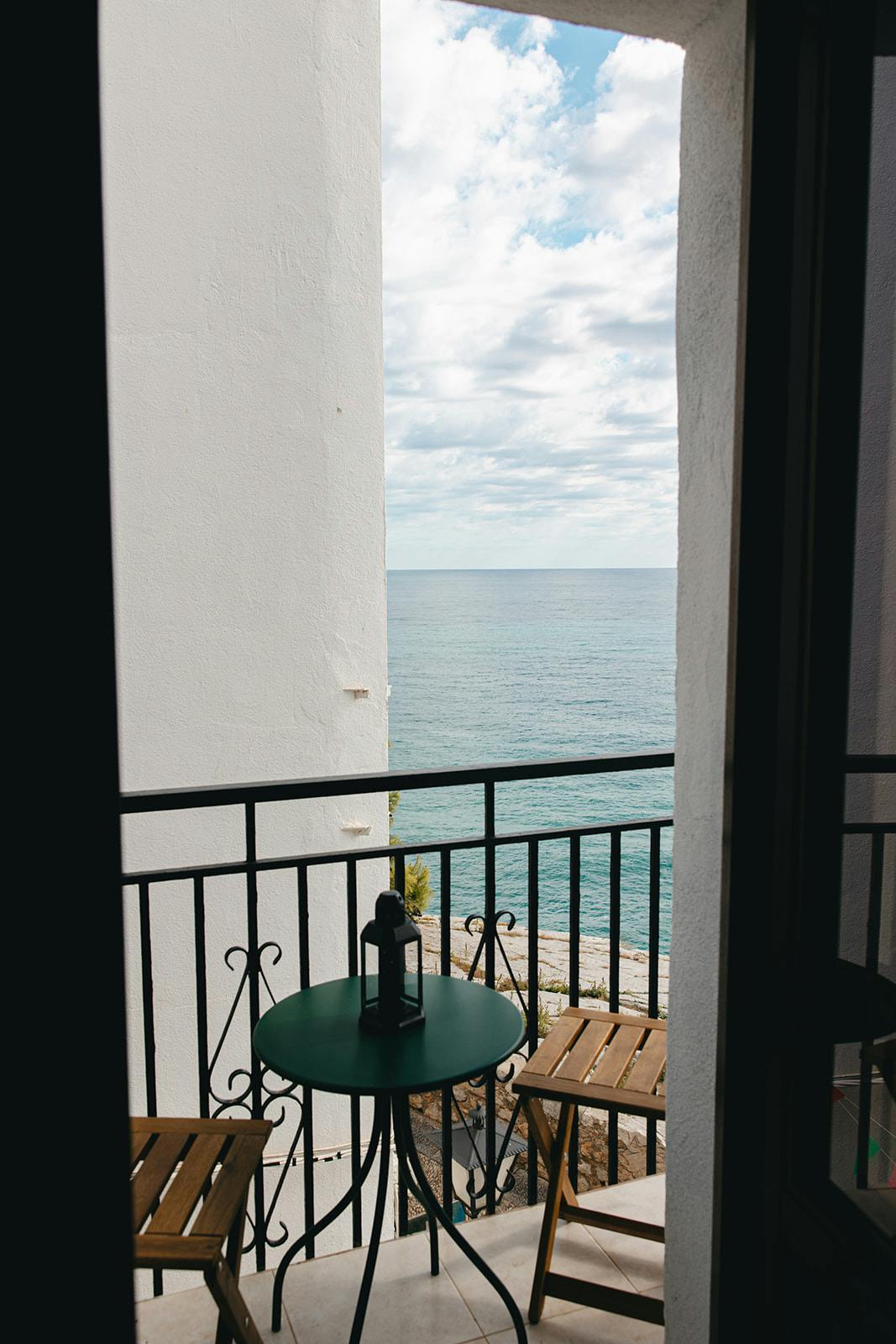 Igual que la planta anterior, aquesta habitació ofereix un balcó privat amb vistes directes al mar. Légèrament més elevada, és un refugi íntim i tranquil per a qui vol desconnectar sense allunyar-se del centre històric.