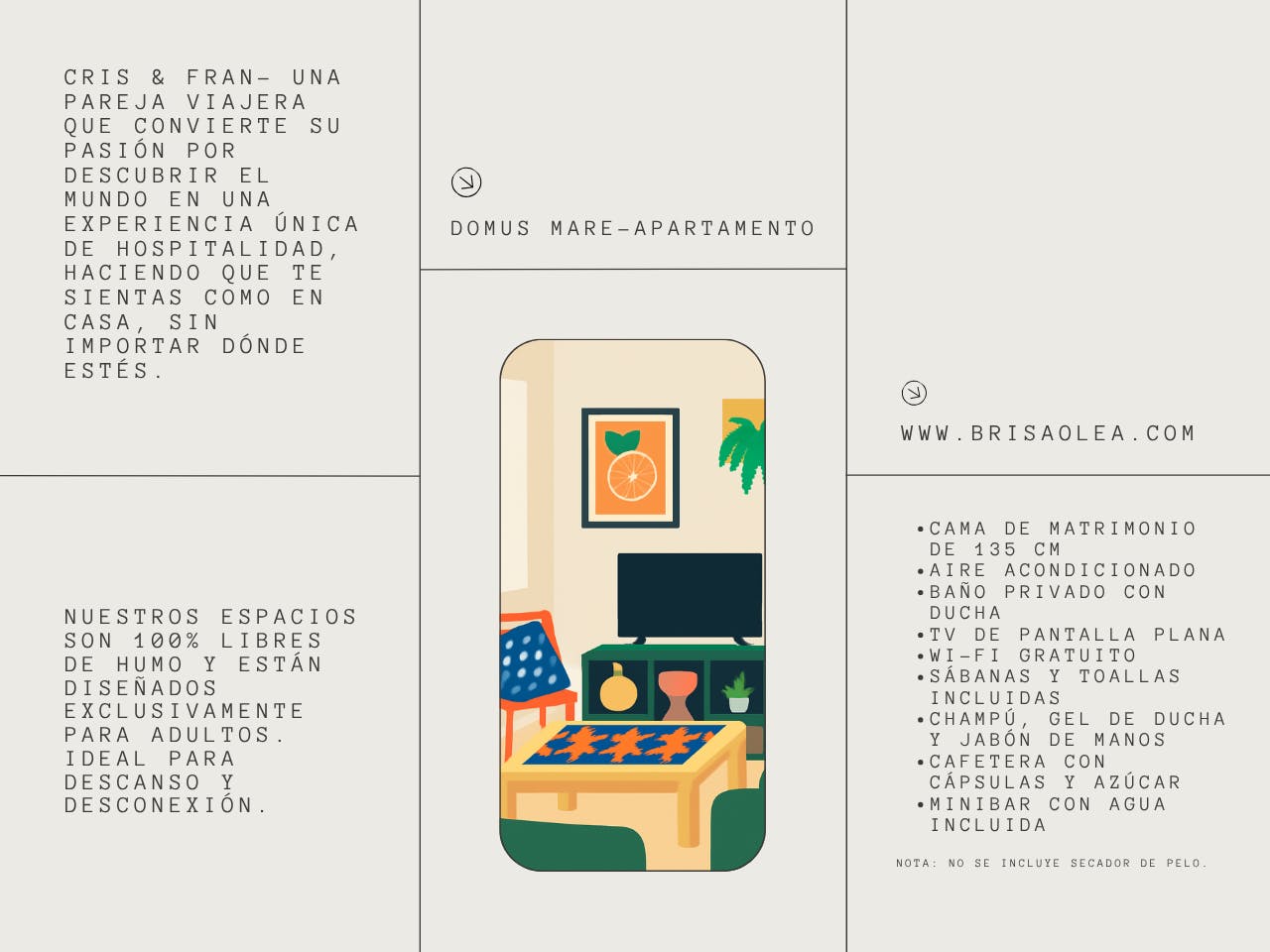 El apartamento DOMUS MARE es la opción perfecta para quienes buscan disfrutar de unas vacaciones en Peñíscola con la comodidad de estar cerca del mar. Situados en una ubicación estratégica, nuestro apartamento se encuentra completamente equipado para ofrecerte todo lo necesario para una estancia tranquila y agradable.