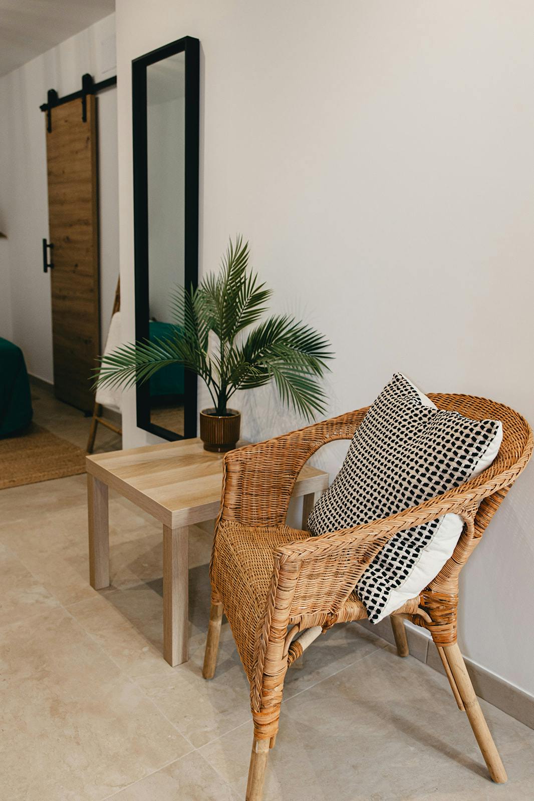 A bright and elegant room with a private balcony overlooking the sea. Ideal for enjoying the Mediterranean experience from an elevated view—feel the breeze from your room or sip coffee in the sun.