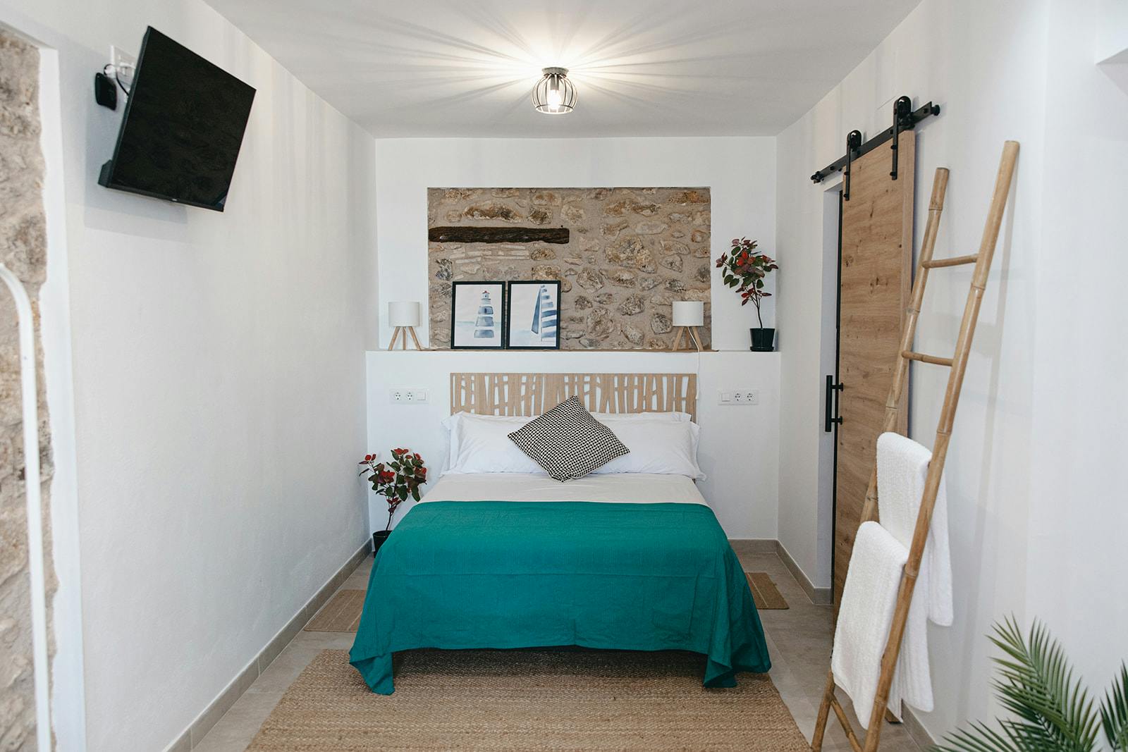 Discover the magic of staying in the heart of Peñíscola’s old town, in a fully renovated charming house. This ground floor room offers Mediterranean soul with easy access, two windows that fill the space with natural light, and sea views from the bed.